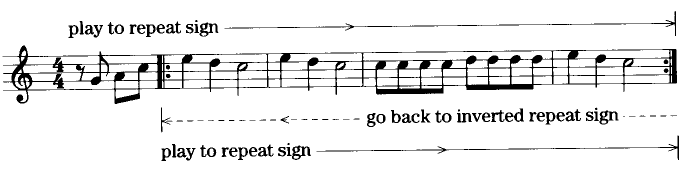 If it's choir music, then the number of times to repeat is usually apparent from the number of verses in the lyrics. If you were to write the music . Here's an example from the lilypond . Musical symbol left repeat sign. Repeat signs when you see this sign on sheet music it means to go back to the beginning of the song and play it through again.